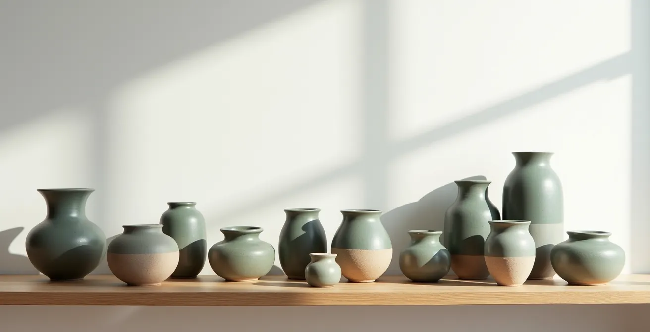 - Materielle Ähnlichkeit: Eine Gruppe von Objekten mit matter Glasur oder eine Ansammlung von rauen, unglasierten Stücken kann eine starke visuelle Einheit bilden.