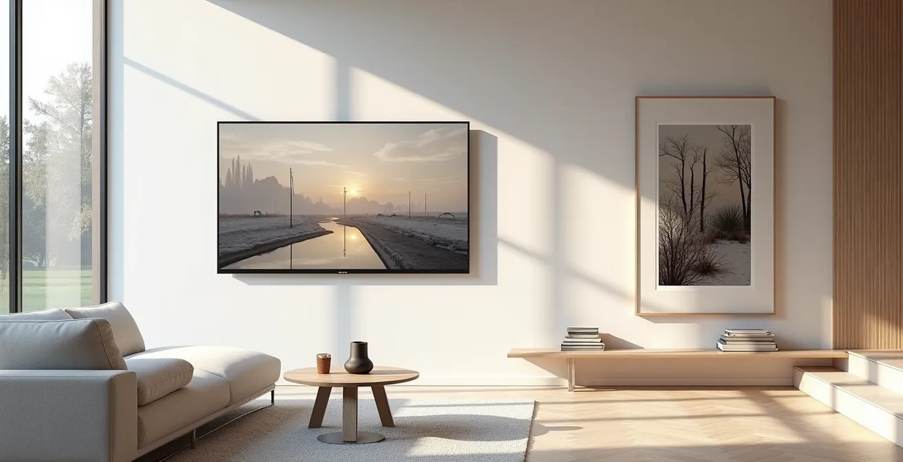 In vielen Wohnzimmern ist es der ewige Konflikt: Die beste Wand, oft gegenüber dem Sofa, wird vom grossen schwarzen Rechteck des Fernsehers beansprucht. Ein Kunstwerk, ob physisch oder digital, muss sich dann mit einem weniger prominenten Platz begnügen. Doch dieser Kompromiss ist nicht mehr zwingend. Die moderne Innenarchitektur, inspiriert von Schweizer Präzision und Minimalismus, sucht nach Lösungen, bei denen Technologie und Ästhetik nicht konkurrieren, sondern koexistieren.